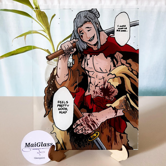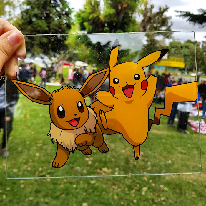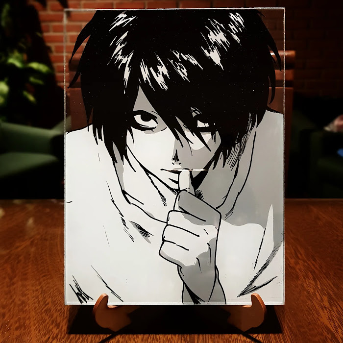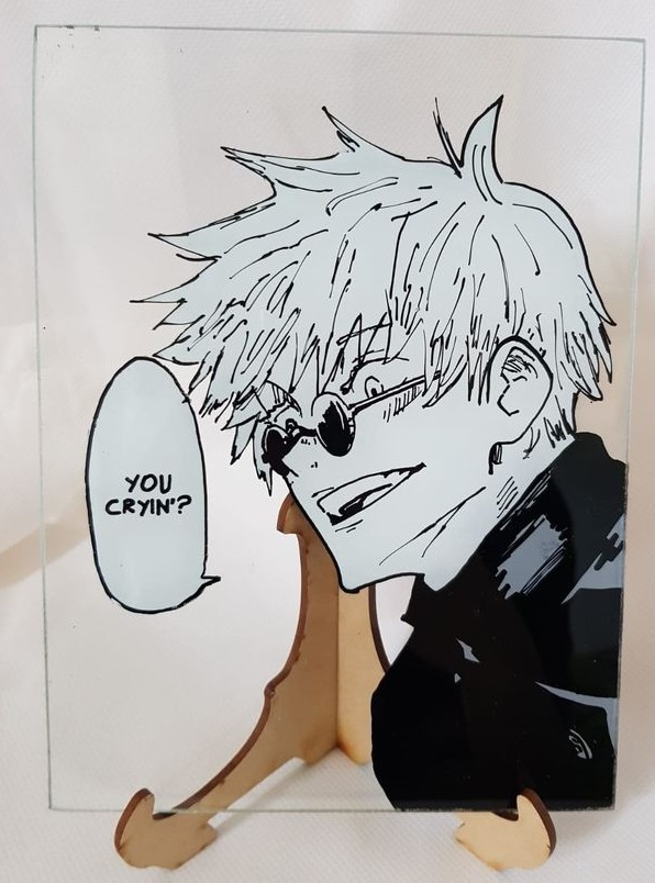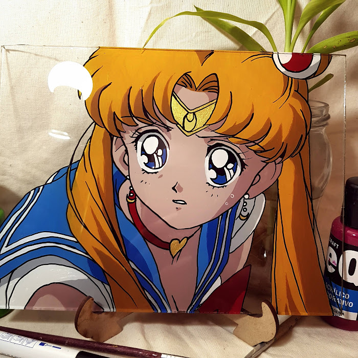 Se utiliza la tecnica de glasspaint para la creacion de arte en vidrio, es decir, se utiliza una impresion en hoja de papel de la imagen a realizar, se pega momentaneamente sobre el vidrio para poder calcar las lineas del dibujo encima y al retirar la hoja del vidrio, se procede a pintar con los acrilicos. Es un proceso que lleva su determinado tiempo segun la complejidad del dibujo ya que se pone mucho enfasis en los detalles de los mismos.